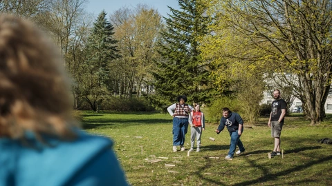 Auf dem parkartig angelegten Gelände gibt es allerlei zu erkunden. Verschiedene Sportbereiche, Spielplätze mit Hüpfkissen, eine Seilbahn, ein Grillplatz sowie Wiesen und schattenspendenden Bäume bieten viel Abwechslung.